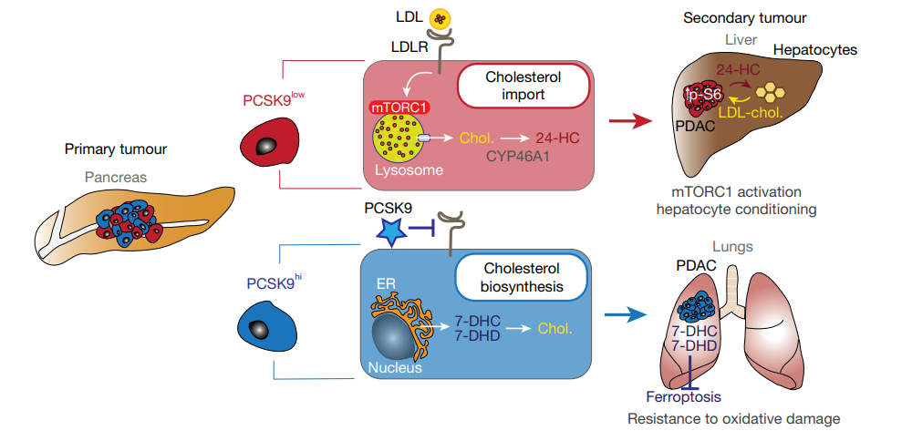 参考文献:PCSK9 drives sterol-dependent metastatic organ choice in pancreatic cancer,Gilles Rademaker 1,2 , Grace A. Hernandez1,2 , Yurim Seo3 , Sumena Dahal 1,2 , Lisa Miller-Phillips2,4 , Alexander L. Li 1 , Xianlu Laura Peng5 , Changfei Luan5 , Longhui Qiu3 , Maude A. Liegeois6 , Bruce Wang2,7 , Kwun W. Wen8 , Grace E. Kim8 , Eric A. Collisson9 , Stephan F. Kruger 4 , Stefan Boeck4,10,11 , Steffen Ormanns12,13 , Michael Guenther 12,13 , Volker Heinemann4 , Michael Haas4,10 , Mark R. Looney3 , Jen Jen Yeh5,14 , Roberto Zoncu15 & Rushika M. Perera1,2,8 ✉https://doi.org/10.1038/s41586-025-09017-8